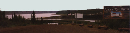 Day nine took me up to the spectacular barrenland scenery where the lonely Dempster Highway snakes across the Arctic Circle. Early in the day I encountered a wolf that had been wandering down the centre of the road until my Swift chased it off. There were a couple of places where the highway widened to become an emergency airstrip. There were the ferry crossings at the Peel River just before Fort McPherson and where the Arctic Red River flows into the Mackenzie. There were barrens and forests of stunted conifers and there were forests of stunted conifers and barrens.