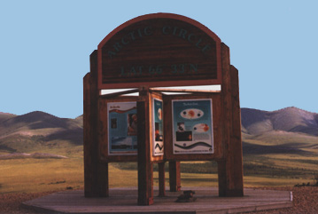 On day eight I started up the Dempster Highway to Inuvik. Although I knew people travelled the road on motorcycles and even bicycles I had an irrational fear of my radiator exploding, my transmission falling off or the oil pan being torn off my car on some rutted and muddy ferry landing. The grooves on my steering wheel were deepened by my grip which may have been somewhat excessive due to the tension. That night I stayed at the Eagle Plains Motel, an oasis of civilization half-way to Inuvik.