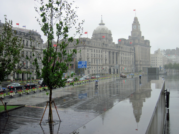 The Bund on a rainy September morning with The Hong Kong and Shanghai Bank building,