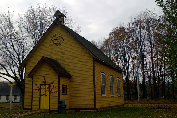 The French Hill School House (Cumberland S.S. #1) was built in 1900 on land from the Brennan farm. In many respects this is a typical one-room school house using balloon frame construction. Large windows were needed to provide light because electricity was not introduced to this part of rural eastern Ontario until early in the 1930's. Oil lamps were installed next to the windows to provide extra lighting when necessary. The school was closed in 1936 and the building was moved to its site at the museum in 1976.