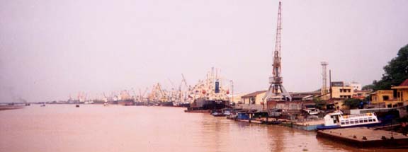 the majority of the traffic boarding the ferry to cross Bach Dang.