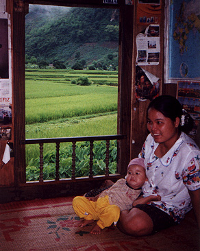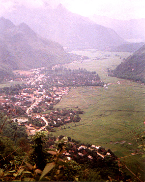 sometimes mist shrouded, vistas. The road winding down to the rice paddies in the Mai Chau Valley offers an excellent view of the town below. |