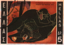 Hercules (Heracles) and the Nemean Lion as portrayed on a Greek stamp issued in 1970